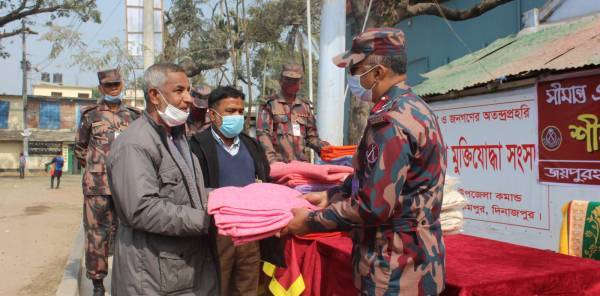 হিলিতে বীর মুক্তিযোদ্ধা ও শহীদ মুক্তিযোদ্ধার পরিবারের মাঝে শীতবস্ত্র বিতরণ করেছে বিজিবি