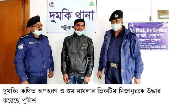 দুমকি থানার পুলিশ হেফাজতে উদ্ধারকৃত ভিকটিম মিজানুর রহমান অপহৃত কিম্বা গুম হয়নি মর্মে স্বীকারোক্তি করে জানায়, তিনি (ভিকটিম) তার বাবার নির্দেশে নিজেই বিভিন্ন স্থানে আত্মগোপন করে ছিল।