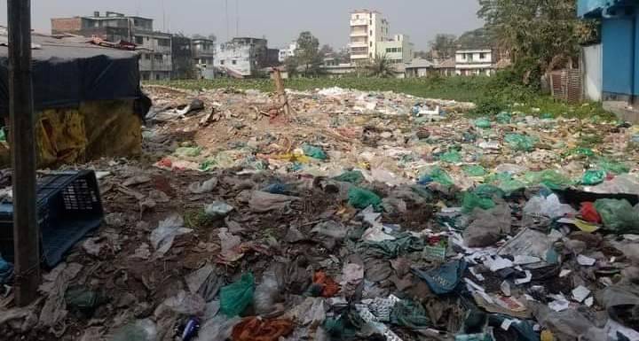 চাটখিল পৌর বাজারে অবস্থিত দীঘিটি আবর্জনায় ভরাট