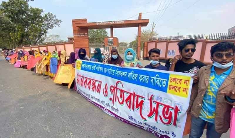 ভর্তি পরীক্ষায় গুচ্ছ পদ্ধতি বাতিলের দাবিতে দুমকিতে শিক্ষার্থীদের মানববন্ধন