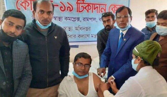 বাগেরহাটের রামপালে উপজেলা নির্বাহী কর্মকর্তা সাধন কুমার বিশ্বাস এর টিকা গ্রহণের মাধ্যমে টিকা প্রদান কার্যক্রম শুরু করা হয়েছে।