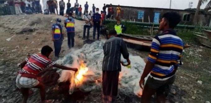 লক্ষ্মীপুরের মেঘনা নদীতে অভিযান চালিয়ে ৬ হাজার মিটার কারেন্ট জাল জব্দ