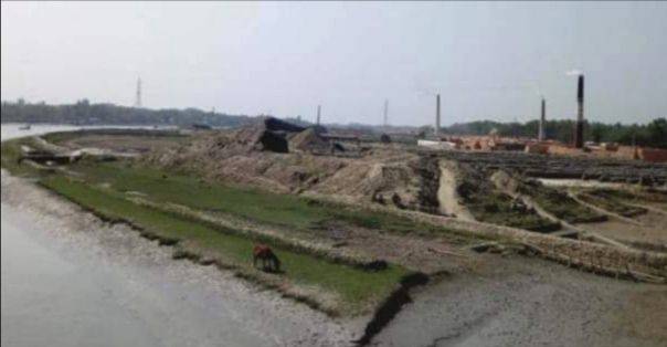 নরসিংদীর চরে গড়ে উঠা অবৈধ ইট ভাটায় গ্রাস করে নিচ্ছে নদীর বুক