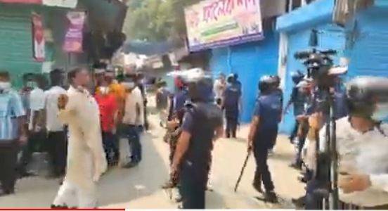 ছাত্রলীগের মিছিলের প্রতিবাদে মাঠ দখলের জন্য আওয়ামীলীগ একটি হরতাল বিরোধী মিছিল বের করে, মিছিলটি দুপুর ১২টার দিকে বানিয়া পট্টি এলাকায় আসলে ছাত্রলীগের সাথে মুখোমুখি সংঘর্ষ বাঁধে, আওয়ামীলীগ এসময় পিছু হটে।পুলিশ এসে উভয় পক্ষকে ধাওয়া দিয়ে পরিস্থিতি শান্ত করে,পরবর্তীতে আওয়ামীলীগ পুনরায় বাটা মোড়ে আসতে চাইলে পুলিশ শক্ত অবস্থান নিলে উভয় পক্ষ সরে যায়।ধাওয়া পাল্টা ধাওয়ায় ব্যবসায়ীরা আতঙ্ক গ্রস্থ হয়ে দোকান পাট বন্ধ করে এদিক সেদিক ছোটাছুটি করেন।অতিরিক্ত পুলিশ মোতায়েন করায় বর্তমানে পরিস্থিতি শান্ত রয়েছে পুলিশ সুপার আবিদা সুলতানা বিষয়টি নিশ্চিত করেন।