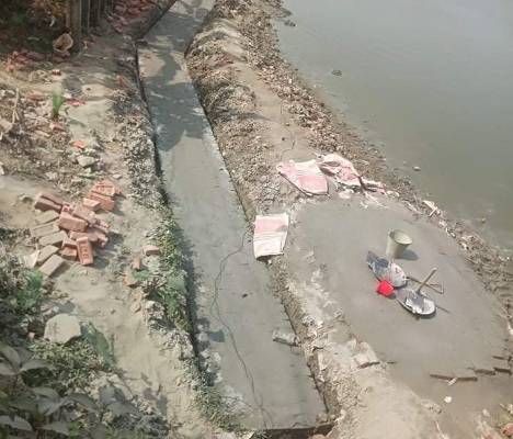 লক্ষ্মীপুরে খোয়া সাগর দীঘির পাড়ে গার্ডওয়াল নির্মাণে অনিয়মের অভিযোগ