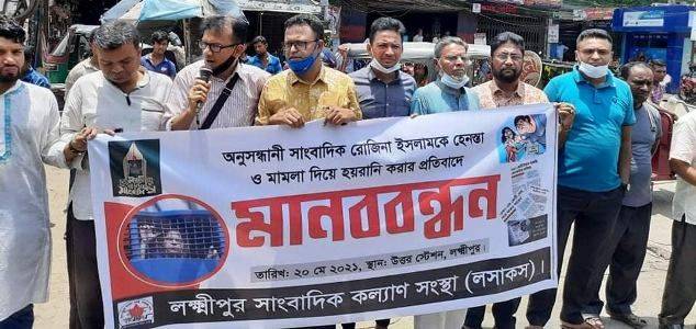 দৈনিক প্রথমআলো পত্রিকার জ্যেষ্ঠ প্রতিবেদকের উপর মন্ত্রণালনের স্বাস্থ্য বিভাগের কর্মকর্তা- কর্মচারীদের দ্বারা নির্যাতন- নিপীড়ণের প্রতিবাদ ও কারাগারে আটক সাংবাদিক রোজিনার নিঃশর্ত মুক্তি ও দুর্নীতিবাজ কর্মকর্তাদের শাস্তির দাবিতে লক্ষ্মীপুরের সাংবাদিকদের আয়োজনে এক মানববন্ধন করা হয়।