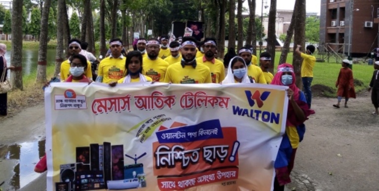 এ সময় সকলে ওয়ালটনের হলুদ গেঞ্জি পরিধান করে, মাথায় ফিতা বেধে র‌্যলিতে অংশগ্রহন করেন।
