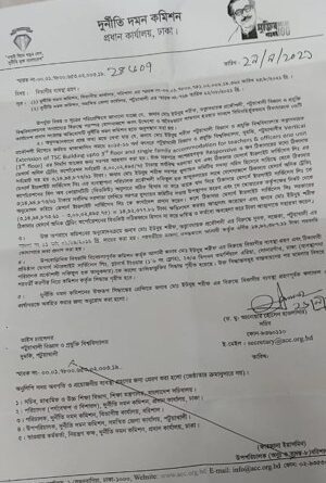 গতসোমবার (৪ অক্টোবর) মধ্যাহ্নে দুদক প্রেরিত ওই তাগিদ পত্র বিশ্ববিদ্যালয়ের রেজিষ্ট্রার দপ্তরে পৌছেছে বলে নিশ্চিৎ হওয়া গেছে।