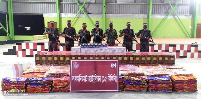 লালমনিরহাট ১৫ বিজিবির অভিযানে কোটি টাকার ভারতীয় পন্য আটক