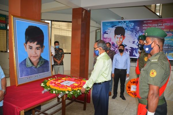 সোমবার (১৮ অক্টোবর) সকাল ১১টায় বিশ্ববিদ্যালয়ের প্রশাসনিক ভবনের সম্মুখে রেজিস্ট্রার (ভারপ্রাপ্ত) ড. মোহাম্মদ কামরুল ইসলাম এর সঞ্চালনায় প্রধান অতিথি হিসেবে উপস্থিত থেকে শেখ রাসেল এর প্রতিকৃতিতে পুষ্পস্তবক অর্পণ করে শ্রদ্ধা নিবেদন করেন মাননীয় ভাইস-চ্যান্সেলর প্রফেসর ড. স্বদেশ চন্দ্র সামন্ত।
