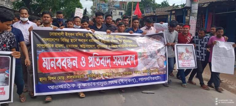 সোমবার (১৮ অক্টোবর) সকাল ১০টায় লালমনিরহাট জেলা শহরের প্রাণকেন্দ্র মিশন মোড়ে আন্তর্জাতিক কৃষ্ণভাবনামৃত সংঘ (ইসকন) লালমনিরহাট জেলা শাখার আয়োজনে বিক্ষোভ ও প্রতিবাদ সমাবেশ অনুষ্ঠিত হয়।