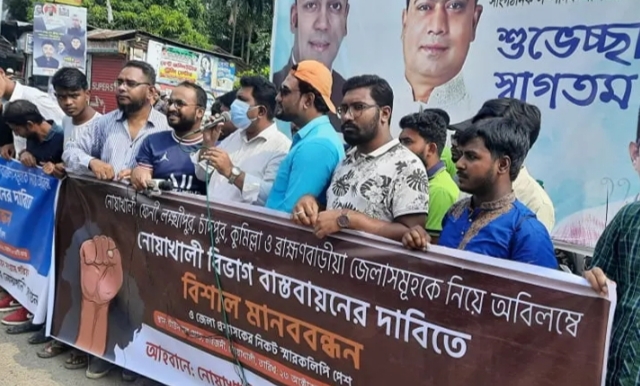 নোয়াখালী বিভাগ বাস্তবায়নের দাবীতে মানববন্ধন