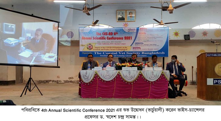 পটুয়াখালী বিজ্ঞান ও প্রযুক্তি বিশ্ববিদ্যালয়ের বরিশাল ক্যাম্পাসে The Coastal Vet Society (CVS)এর উদ্যোগে স্বাস্থ্যবিধি মেনে 4th Annual Scientific Conference 2021 অনুষ্ঠিত হয়েছে।