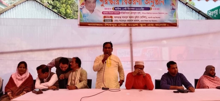 অনুষ্ঠানে সভাপতিত্ব করেন শিবপুর পৌর মডেল স্কুল এন্ড কলেজের প্রতিষ্ঠাতা সভাপতি ও শিবপুর উপজেলা আওয়ামী লীগের সংগ্রামী সাধারণ সম্পাদক আলহাজ্ব শামসুল আলম ভুঁইয়ার রাখিল। পুরস্কার বিতরণ করেন  ইঞ্জিনিয়ার এনামুল হক।