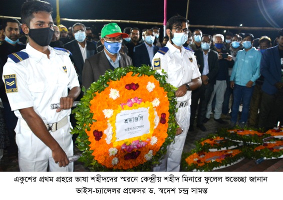 এ উপলক্ষে কর্মসূচির মধ্যে ছিল পুষ্পার্ঘ্য অর্পণ, জাতীয় পতাকা অর্ধনমিতকরণ, কালো পতাকা উত্তোলন, প্রভাতফেরী ও আলোচনা সভা। একুশের প্রথম প্রহর রাত ১২.০১ মিনিটে কেন্দ্রীয় শহীদ মিনারে পুষ্পার্ঘ্য অর্পণ করেন ভাইস-চ্যান্সেলর প্রফেসর ড. স্বদেশ চন্দ্র সামন্ত।