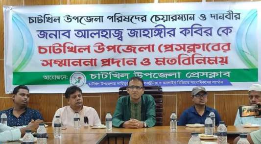 চাটখিল উপজেলা পরিষদের চেয়ারম্যান ও দানবীর জনাব আলহাজ্ব জাহাঙ্গীর কবির কে চাটখিল উপজেলা প্রেসক্লাবের সম্মাননা প্রদান ও মতবিনিময় সভা অনুষ্ঠিত হয়েছে।