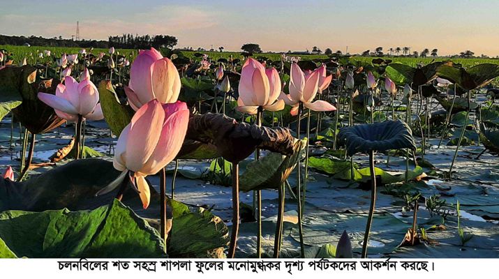 প্রায় চার দশক পর চলনবিলে আবারও ফুটছে জলজ ফুলের রানি পদ্ম। পদ্ম তার আবির রাঙানো রুপের মোহনভঙ্গিমা সাজিয়ে বসেছে যেন। তার অপার্থিব বাহারি রুপে প্রকৃতি হয়েছে স্বপ্নময় বর্ণিল। পদ্ম দিনের আলোয় দ্যুতি ছড়ায়। বিলজুড়ে শত শত পদ্মের এ নয়নাভিরাম দৃশ্য চোখভরে দেখতে ছুটে আসছে পর্যটক আর প্রকৃতিপ্রেমীরা। পবিত্রতার আবেশ ছড়ানো পদ্মের রুপবৈচিত্র্য দেখে প্রকাশ করছে তাদের মুগ্ধতা।