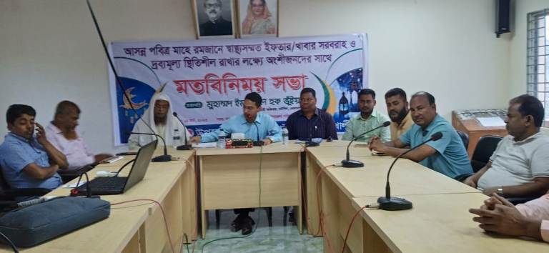 নোয়াখালীর চাটখিলে আসন্ন পবিত্র মাহে রমজানে স্বাস্থ্যসম্মত ইফতার/খাবার সরবরাহ ও দ্রব্যমূল্য স্থিতিশীল রাখার লক্ষ্যে অংশীজনদের সাথে মতবিনিময় সভা অনুষ্ঠিত হয়।