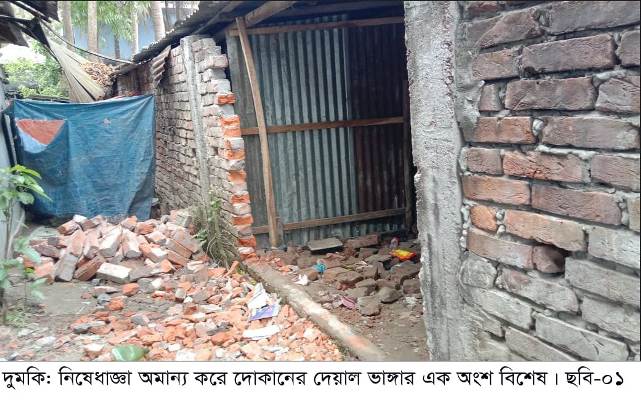 পটুয়াখালীর দুমকিতে আদালতের নিষেধাজ্ঞার জমিতে জোড়পূর্বক দোকান ভেঙ্গে চলাচলের রাস্তা নির্মাণে বেপরোয়া হয়ে উঠেছে একটি প্রভাবশালীচক্র। অবৈধ জনতাবদ্ধে স্থানীয় প্রশাসনকে ম্যানেজ করে স্টলদোকানের পেছনের দেয়াল ভেঙ্গে ভেতরে রাতারাতি বাউন্ডারি ওয়াল ও কথিত রাস্তা নির্মাণ করছে ওই প্রভাবশালীচক্রটি। এমন জবর-দখলে বাঁধা দেয়ায় বিরোধপূর্ণ সম্পত্তির প্রকৃত ওয়ারিশদের ওপর হামলা ও হুমকি-ধমকির অভিযোগ পাওয়া গেছে।