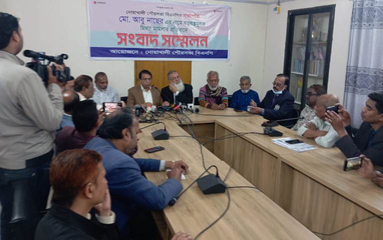 নোয়াখালী পৌর বিএনপির সভাপতির বিরুদ্ধে চাঁদাবাজির মামলার প্রতিবাদে সংবাদ সম্মেলন