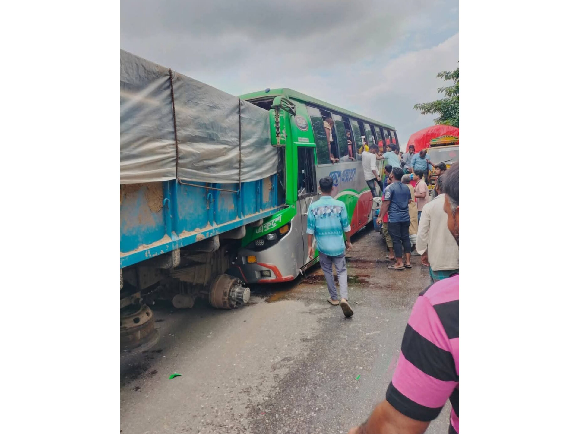 নোয়াখালীর সোনাইমুড়ীতে দাঁড়িয়ে থাকা একটি ট্রাকের পিছনে বেপরোয়া গতির একুশে পরিবহনের একটি যাত্রীবাহী বাস ধাক্কা দেয়। এতে বাসের চালক বেলায়েত হোসেন (৪৯) নিহত হয়েছেন। এ সময় বাসের আরো অন্তত ১২ যাত্রী আহত হয়।