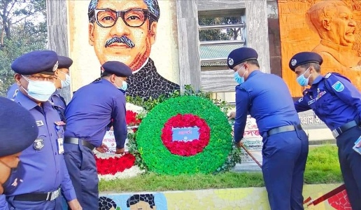 নরসিংদীতে ৭ মার্চ উপলক্ষে জেলা পুলিশের বঙ্গবন্ধু ম্যুরালে পুস্পস্তবক অর্পণ